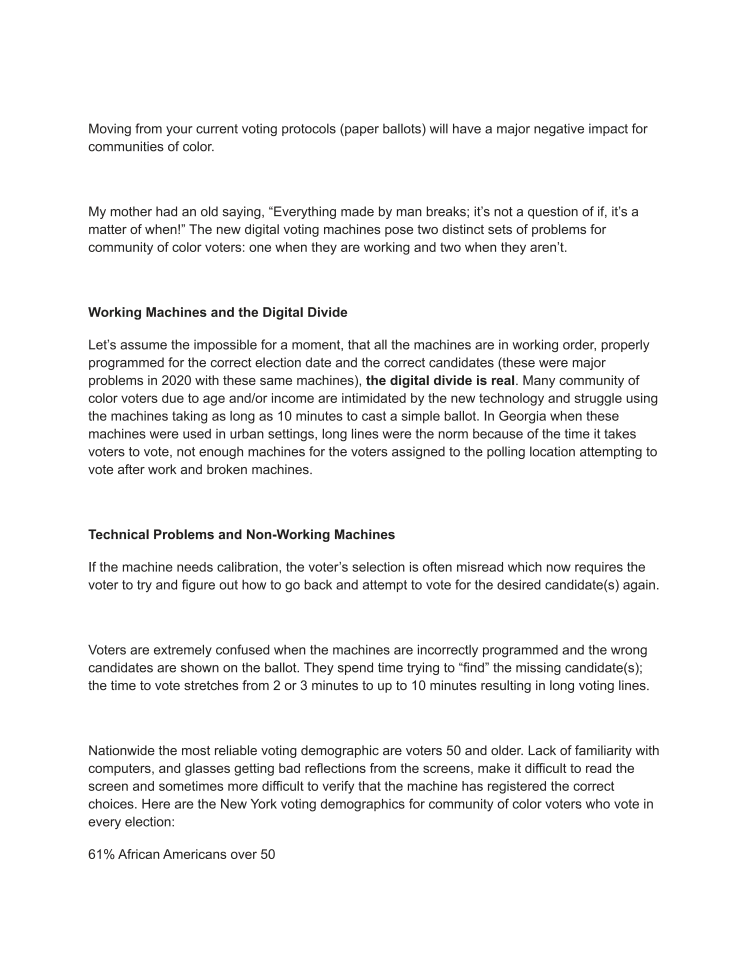 The letters caution that these machines will change New York’s entire way of voting, undermine